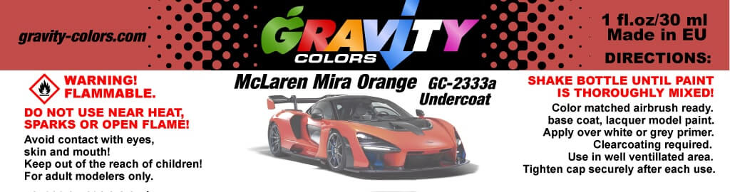 - Then apply GC-2333b McLaren Mira Orange Basecoat over the GC-2333a McLaren Mira Orange Undercoat once it is dry.