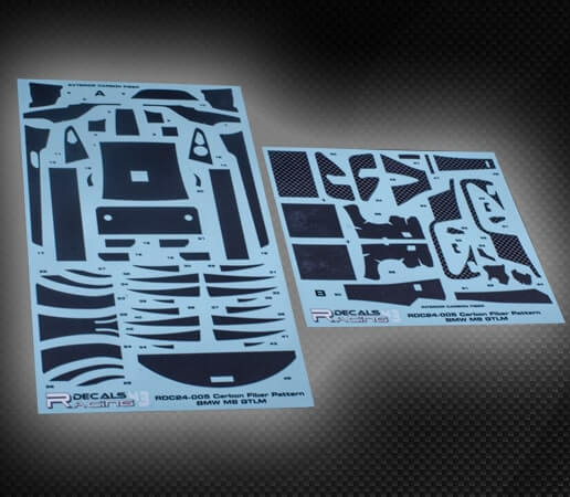 34,00 €This decal set includes carbon fiber pattern decals for the BMW M8 GTLM exteriors, interiors and engine bay.