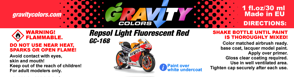 High quality pre-cut masks for Repsol Honda RC213V ’14. The colors needed for the model are GC-102 Titanium White, GC-168 Repsol Light Fluorescent Red and GC-269 Repsol Light Fluorescent Orange.