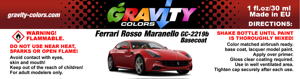 - Then apply GC-2219b Ferrari Rosso Maranello Basecoat over the GC-2219a Ferrari Rosso Maranello Undercoat once it is dry.
